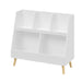 Kids Bookshelf And Toy Organizer, 5 Cubbies Wooden Open Bookcase, 2-Tier Baby Storage Display Organizer With Legs, Free Standing For Playing Room, Bedroom, Nursery, Classroom - White