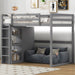 Full Size Loft Bed With Built In Wardrobe, Storage Shelves, And LED Light - Gray 79.49"W x 57.01"D x 65.0"H - 176.88 lb