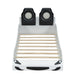 Race Car Bed: Bold race car silhouette adds excitement and visual appeal to the bedroom