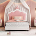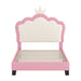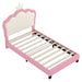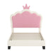 Twin Size Upholstered Princess Bed & Crown Headboard, Twin Size Platform Bed With Headboard And Footboard - White / Pink