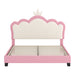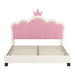 Full Size Upholstered Princess Bed & Crown Headboard, Full Size Platform Bed With Headboard And Footboard - White / Pink