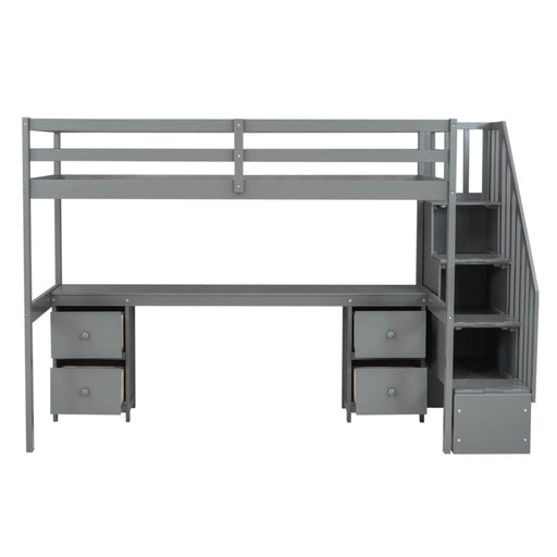 Loft Bed With U-Shaped Desk, Drawers, And Storage Shelves