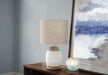 Dimensions: Measures 9.5 in. L x 9.5 in. W x 16.5 in. H, with a base of 5.5 in. L x 5.5 in. W x 7.5 in. H and a beige shade of 9.5 in. L x 9.5 in. W x 8 in. H.