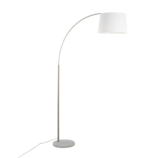 Contemporary Design: The March Floor Lamp by LumiSource features a dramatic metal arc and modern linen drum-shaped shade, adding a contemporary f...