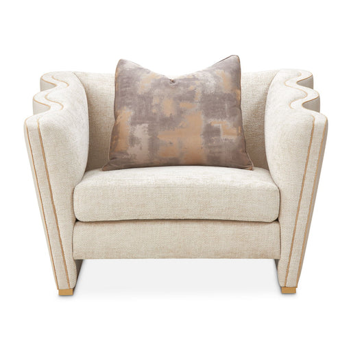 The Sassani Chair features softly rounded armrests and a plush seat upholstered in luxurious jacquard chenille. This statement piece includes a sin...