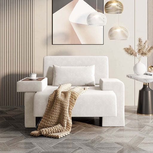 Fixed Modern Accent Chair Single Seater Plush Chenille Lounge Chair With High Resilience Cushion - Ivory White