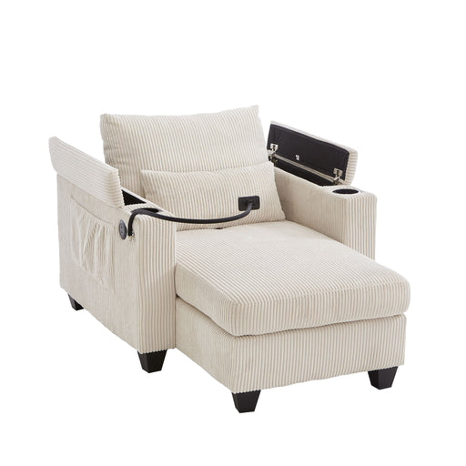 Convertible Chaise Lounge Sofa Chair With USB Ports, Cup Holders, Phone Holder And Storage