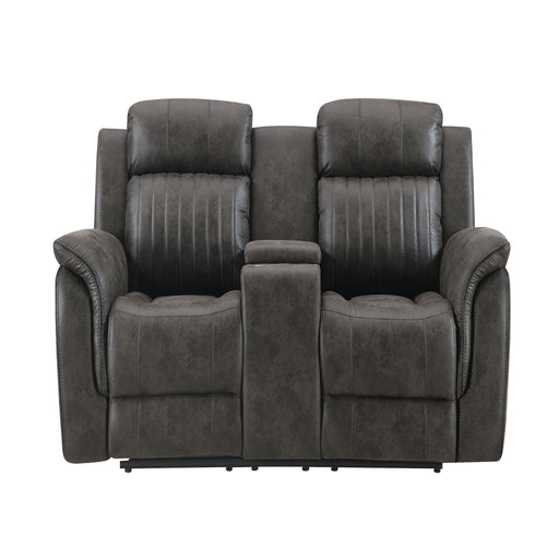 Elonzo - Power Motion Loveseat With Console, LED, Power Headrest & Speaker - Light GrayProduct Features Seat Construction: Pocket Coil Wooden I...