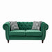 Chesterfield Sofa With Roll Armrest And Nailhead, 2 Seater Couch - Green67.01"W x 32.99"D x 29.02"H - 95.92 lb