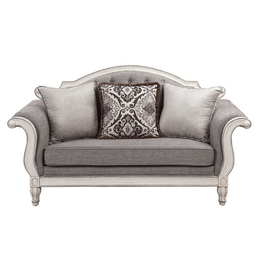 Katia - Loveseat With 2 Pillows - Light Gray Linen & Weathered White