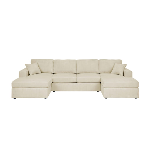 Spacious Wale Corduroy Sofa: Features a luxurious striped fabric with an elegant, contemporary U-shaped design. Adds timeless sophistication and b...