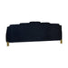 Introducing the Empire Sofa, a durable and stylish addition to your living space. Crafted with an eco-friendly manufactured wood frame, this 3-seater couch ensures lasting strength and durability. Upholstered in luxurious 100% midnight black polyester velvet fabric, it adds a touch of sophistication to any room. The modern metro style, featuring tiered panels and gleaming gold accents, captures the enchanting ambiance of a city skyline under the stars. Experience added ambiance with blue LED accent light strips on the side panels, effortlessly controlled with the touch of a button. Enjoy supportive seating with high-density full foam cushions, providing resilient and comfortable support. Upgrade your living room with the Empire Sofa, where style meets durability for unparalleled comfort.