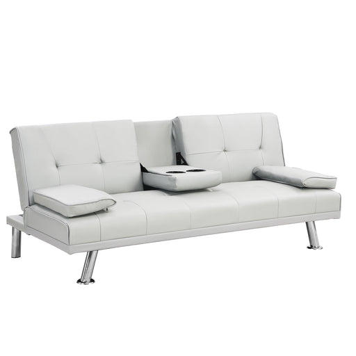 Futon Sofa Bed With Armrest Two Holders Wood Frame, Stainless Leg