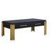 Introducing the Empire Coffee Table, a stylish and functional centerpiece for your living space. Crafted with durable eco-friendly materials and a sleek black finish, this table ensures long-lasting durability while adding a touch of contemporary elegance to your room. Its modern metro style, featuring gleaming gold tiered legs, evokes the enchanting allure of a city skyline under the stars. Enjoy convenient storage with two drawers, perfect for keeping remotes and other living room essentials organized and within reach. Elevate your living area with the Empire Coffee Table, where style meets practicality.