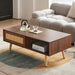 Rattan Coffee Table Sliding Door For Storage Legs Modern Table For Living Room - Walnut 41.34"W x 21.65"D x 16.34"H - 36.31 lb