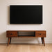 - Features: solid wood, mango wood, chestnut, coffee table, 2 drawers, shiny brass knobs, open slot, living room, nordic