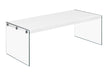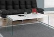 Coffee Table Rectangular, Clear Tempered Glass, Contemporary, Modern - Glossy White 44.02"W x 22.01"D x 16.26"H - 36.99 lb