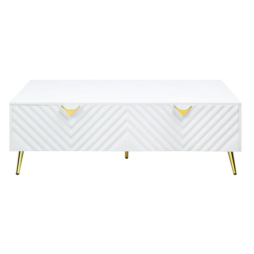 13 Pcs Slats Included Daveigh - Coffee Table - White High Gloss & Gold47.01"W x 25.98"D x 17.99"H - 60.01 lb