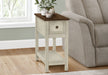 Space-Saving Style: With its transitional design, this table is perfect as an end or side table in living rooms, or as a stylish nightstand in bedrooms, offering versatility in placement.
