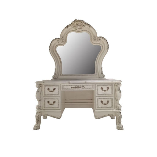 Midriaks - Mirror & Stool - Synthetic Leather , White & Gold