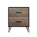 The Elk River Two Drawer Nightstand offers a seamless blend of functionality and rugged charm, making it an essential addition to any bedroom. This nightstand is meticulously crafted from eco-friendly manufactured woods and finished with a decorative laminate that is both scratch-resistant and durable, ensuring it maintains its heirloom-quality appearance over time. The rustic brown finish and weathered look lend an air of antiquity that complements its modern industrial design, highlighted by sturdy metal legs and cast iron trims for an edgy, loft-like vibe. Designed to provide ample storage, the nightstand features two drawers that are perfect for keeping bedside essentials organized and within easy reach. Each drawer is constructed with English dovetail joinery and operates on smooth Kenlin center glides, combining time-tested quality with exceptional ease of use. Whether paired with other pieces from the Elk River collection or as a standalone item, this nightstand enhances any bedroom with its practical elegance and striking aesthetic.
