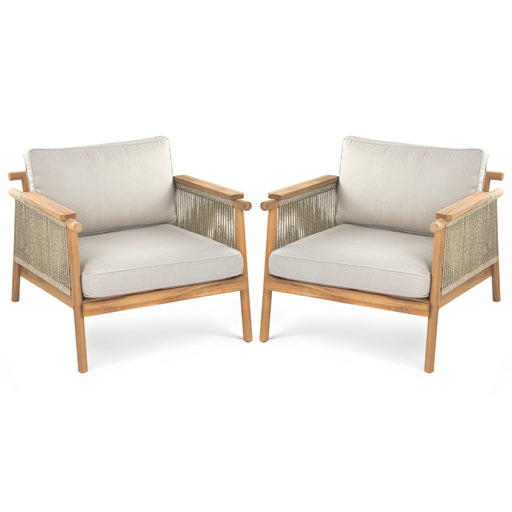 Versatile Use: Perfect for patios or sunrooms, ideal for relaxing and socializing. Stylish Design: Features a teak finish and rope-woven arm desig...