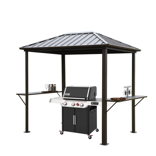 Grill Hardtop Gazebo Outdoor Metal Hard Top Gazebo, Permanent Bbq Gazebo With Galvanized Steel, Aluminum Framed Pavilion With Shelves - Dark Brown