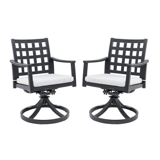 Modern Classic Outdoor Dining Swivel Rockers With Sunbrella Cushion, Lattice Design, Weather Resistant Frame (Set of 2) - Ember Black