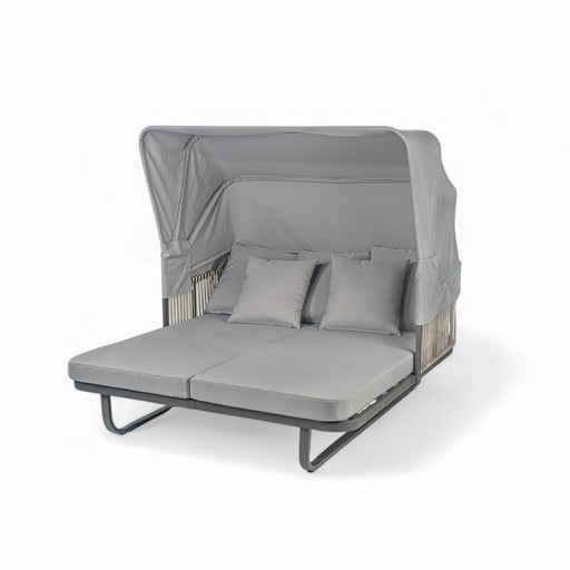 Outdoor Sunbed With Adjustable Canopy, Double Lounge, Daybed - Black / Beige