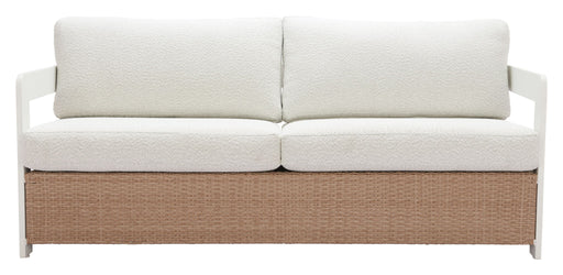 Kirkby - Bohemian Outdoor Patio Cushioned Sofa Weatherproof 56.25In - Teak / Beige