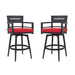 Outdoor Swivel Bar Chairs, 360 Degree Rotation With Ergonomic Backrest (Set of 2) - Ember Black / Jocky Red 21.3"W x 22.6"D x 42.91"H - 20.26 lb