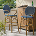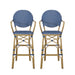 Outdoor Wicker And Aluminum French Barstools Set With Bamboo Print - Navy Blue21.65"W x 22.05"D x 45.67"H - 10.14 lb