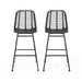 Sawtelle - Outdoor Wicker Barstools (Set of 2) With Faux Rattan And Iron Frame - Gray / Black 20.24"W x 21.73"D x 42.99"H - 21.16 lb