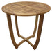 Outdoor Circular Wood Bistro Table With Curved Legs And Slat Panel Table Top - Teak