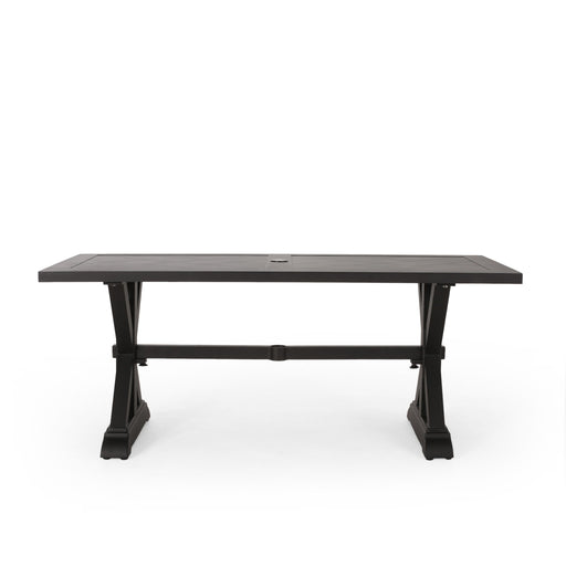 Modern Outdoor Dining Table With X Shaped Legs, Umbrella Hole