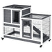 Pawhut - Wooden Rabbit Hutch Elevated Bunny Cage Indoor Small Animal Habitat With Enclosed Run With Wheels, Ramp, Removable Tray Ideal For Guinea Pigs - Gray