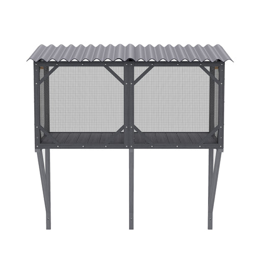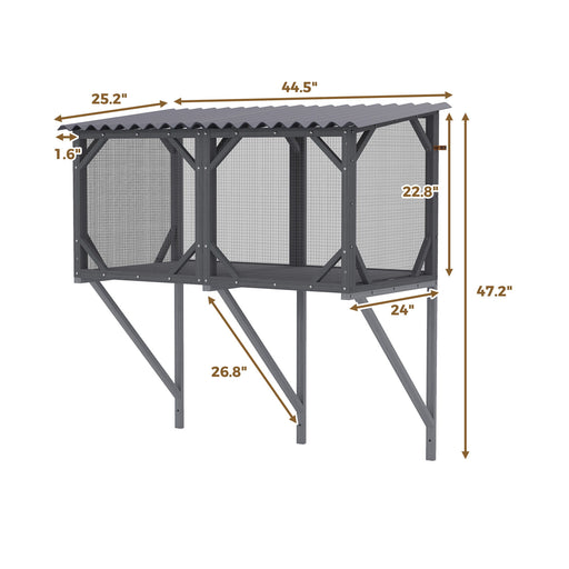 Spacious Wooden Cat Catio Outdoor Kitty House With Bridges And Roof Cover - Gray