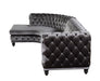 A modern take on traditional design, this Atesis sectional is a statement - making piece of beautiful design. Rich dark gray velvet is tufted on both the inside and outside of the frame, a beautiful design detail that can be seen from any angle in a room. The seat cushions allow for comfortable multi person seating with lots of room to stretch out and relax. Suited for both traditional and contemporary design environments