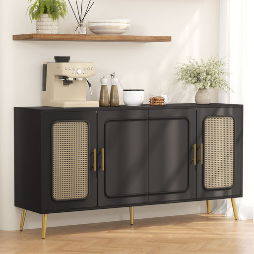4 Door Sideboard Storage Cabinet For Living Room And Dining Room, 2 Large Cabinets With Gold Handles And Adjustable Shelf - Black