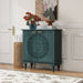 Hollow Carved 2 Door Accent Cabinet With Adjustable Shelf, Sideboard Buffet For Entryway, Living Room Or Bedroom - Blackish Green