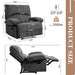 Generous Seat Width: The recliner features a spacious 27.5" width, offering ample room to sit back and relax comfortably, whether you prefer to curl up or stretch out.
