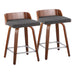 Maya - Mid-Century Modern Fixed Height Counter Stool With Swivel With Square Footrest (Set of 2) - Walnut / Charcoal 22.76"W x 22.76"D x 31.5"H - 13.01 lb