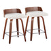 Maya - Mid-Century Modern Fixed Height Counter Stool With Swivel With Square Footrest (Set of 2) - Walnut / Cream 22.76"W x 22.76"D x 31.5"H - 13.01 lb