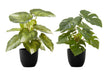 13" Tall, Artificial Plant, Monstera Calthea, Indoor, Faux, Fake, Table, Greenery, Potted, Decorative (Set of 2) - Green / Black