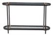 The Aneis Console Table in Black adds a touch of modern elegance to any space. Its black tone and construction from tempered rippled glass, fir wood, and steel make it a standout piece in any room. Ideal for hospitality use, it adapts effortlessly to various settings.
