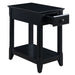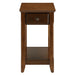 Classic and timeless without being garish. The wooden accent table shows it's elegant silhouette in a attractive finish. A storage drawer under the table top helps your hide odds and ends around the living area, with a bottom shelf for magazine or decorations display. Every living room needs this lovey complement. Use the Bertie Accent table to set a warm, homey wood tone in your home.