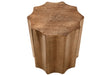 Design and Finish: This drum table features a stylish scalloped design with a hammered texture, finished in an antique metal. It adds an eye-catching boho glamour to any living room or bedroom setting.