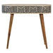 Edessa Bone Inlay Table - This beautiful boho inspired table has been constructed from 100% solid mango wood and has a fine finish. Other features include a 2 bone inlay drawer, and Nordic style legs. The bone inlay is sourced responsibly from deceased animals such as camels, goats, and buffaloes.