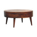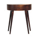 Odyssey Table - This beautifully designed table is constructed from 100% solid mango wood in a finish and has a smooth circular design along with a shiny brass knob on the drawer for easy access. A lovely, simple addition and accent piece for the home which can be incorporated with different interiors and styles of furniture.