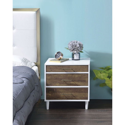 The Denvor end table brings a retro style with a classy feel. This table rectangular top featuring gold finished legs, accented by a matching gold ...